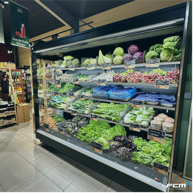 Cette modernisation garantit une meilleure conservation des légumes grâce à une régulation thermique optimisée et une meilleure présentation des produits. Le magasin bio bénéficie ainsi d’une vitrine plus esthétique et fonctionnelle, tout en réduisant ses consommations énergétiques et son empreinte carbone.
